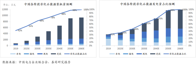 圖7 中國(guó)非化石能源裝機(jī)量和發(fā)電量預(yù)測(cè)