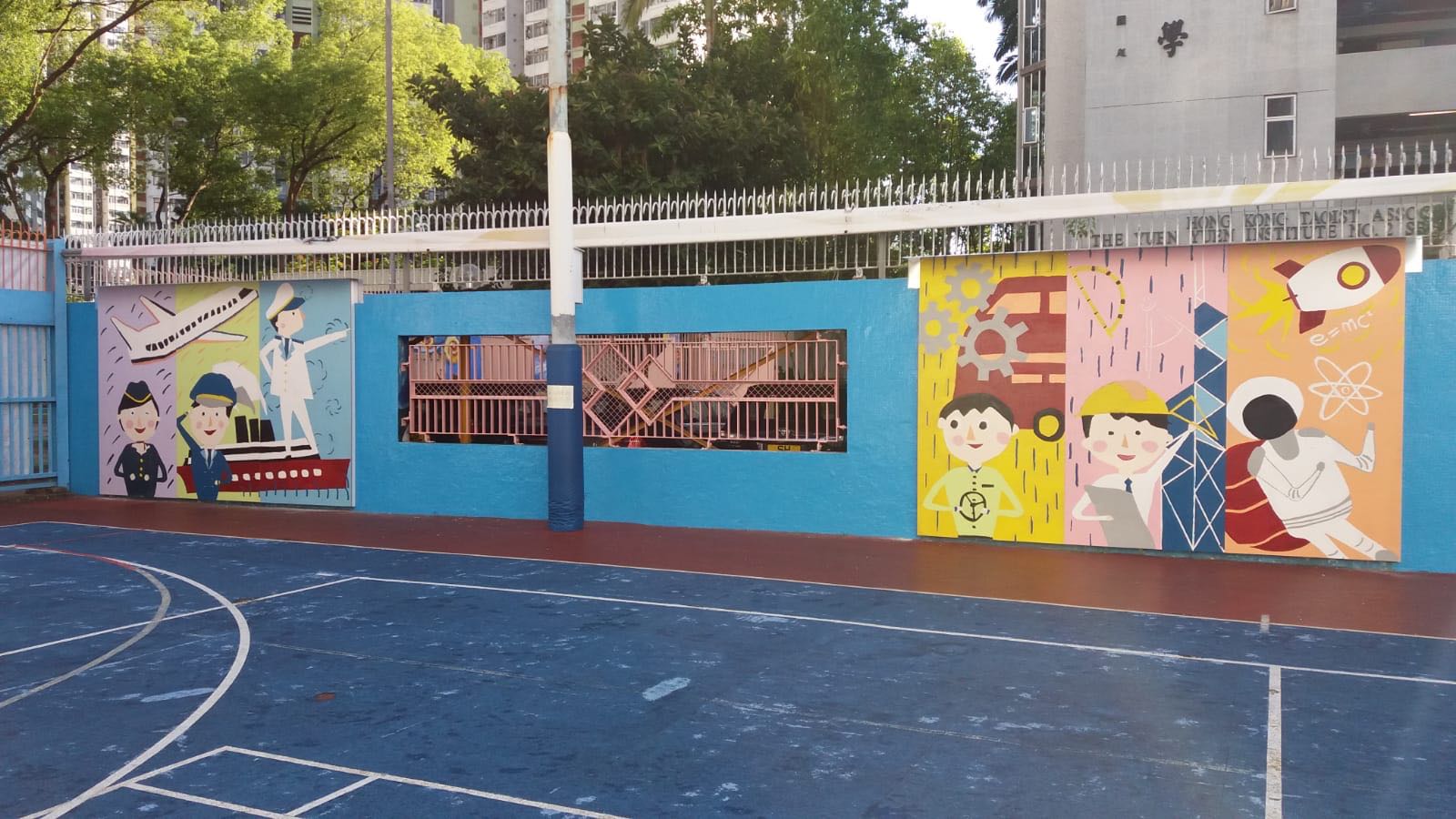 活動完成后,老師隨即把完成的作品掛在學校的墻壁上,壁畫除了美化校園環(huán)境,亦能有效地將藝術引進校園,更能讓作品融入學習氛圍,增添文化氣息。