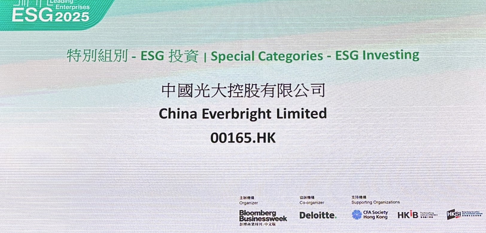 2025年11月19日,光大控股在彭博商業(yè)周刊(中文版)主辦的第七屆“ESG 領先企業(yè)2025”評選中,憑借在ESG(環(huán)境、社會及管治)投資領域的卓越實踐與突出績效,成功斬獲“ESG 投資”獎項。該獎項旨在表彰在全球金融市場中,在ESG投資整合、策略實施及績效表現(xiàn)方面展現(xiàn)出領導力和杰出成就的企業(yè)。