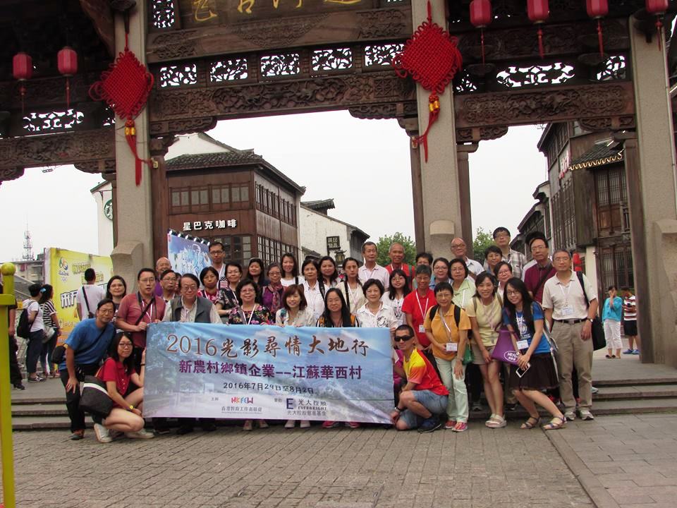2016年7月29日至8月2日 – 由中國光大控股有限公司(「光大控股」,股票代號: 165.HK)連續(xù)第四年贊助的「光影尋情大地行2016」圓滿舉行。今年活動以「新農(nóng)村鄉(xiāng)鎮(zhèn)企業(yè) – 華西村」為主題, 主辦單位香港教育工作者聯(lián)會帶領40多位來自不同學校的老師前往江蘇省無錫、太倉、張家港、上海等地。行程中透過參觀中國高等教育學府 - 復旦大學,讓香港老師親身體驗國內(nèi)教育文化;并透過考察歷史古跡如華西村、東林書院、京杭大運河、徐悲鴻故居等地方,讓香港老師深入了解當?shù)匚幕⒄J識國情。交流團完成后,老師們需提交關于此行的報告,把所見所聞與學生分享,教育下一代。