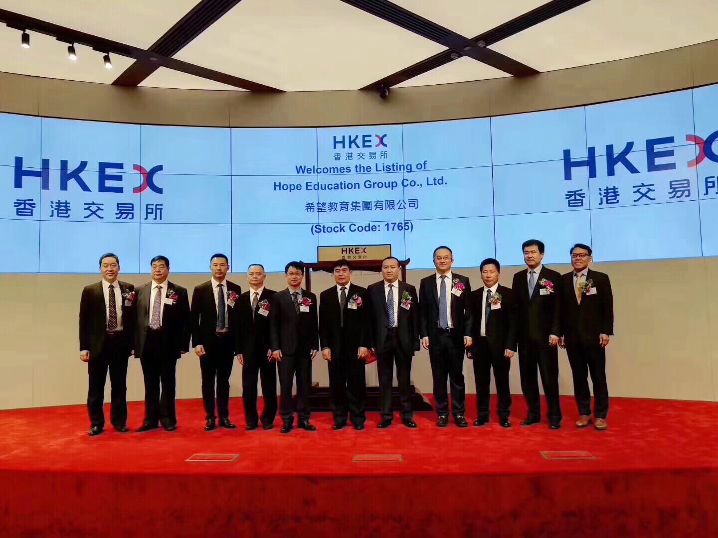 The amount of shares offered of Hope Education’s IPO is 1.67 billion shares. The maximum offer amount is HKD3.20 billion. The issuer plans to use proceeds to acquire higher education schools and to establish new campuses for the acquired schools, construct new buildings for education purpose, and to repay bank loans and other borrowings. From left: Huang Zhongcai (Hope Education- Joint Company Secretary),Hu Wenhua (Hope Education- Lifetime Employee),Li Tao (Hope Education- Executive Director),Xu Changjun (Hope Education- Chairman,Executive Director),Wang Degen (West Hope Group- President, Tequ Group- Chairman, Hope Education- Non-executive Director), Chen Yuxin(West Hope Group- Chairman), Wang Huiwu (Hope Education- ExecutiveDirector, Chief Executive Officer, President), Gao Hao(Hope Education- Independent Non-executive Director), Tang Jianyuan (Hope Education- Non-executive Director), Zhang Mingao (China Everbright Limited- Executive Director and Chief Investment Officer)、Lu Zhichao (China Everbright Limited- Mezzanine Fund Managing Director)Established in 2007, Hope Education built its first school in 2009. Through nearly a decade of effort, Hope Education has developed a sophisticated and efficient centralized management model and has acquired outstanding capabilities of acquiring and establishing schools. Nowadays Hope Education becomes the second largest private higher education group in China.