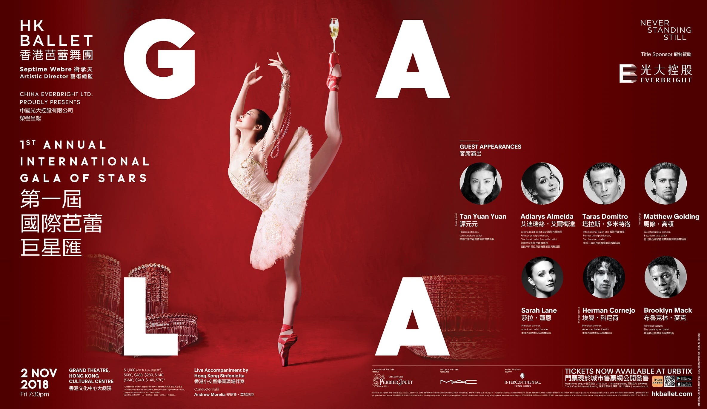 Title sponsored by China Everbright Limited (“Everbright”, stock code: 165.HK) and performed by Hong Kong Ballet, the 1st Annual International Gala of Stars was staged successfully on 2 November at Hong Kong Cultural Centre. Well-known international ballet stars including Tan Yuan Yuan, Principal Dancer of San Francisco Ballet, Sarah Lane, Principal Dancer of American Ballet Theatre, Adiarys Almeida, International Ballet Star and Former Principal Dancer of Cincinnati Ballet & Corella Ballet and Herman Cornejo, Principal Dancer of American Ballet Theatre etc. partnered with Hong Kong Ballet artists featuring a series of popular classical and contemporary ballet works. It was attended by a full-house and brought the auidences an excited evening.
