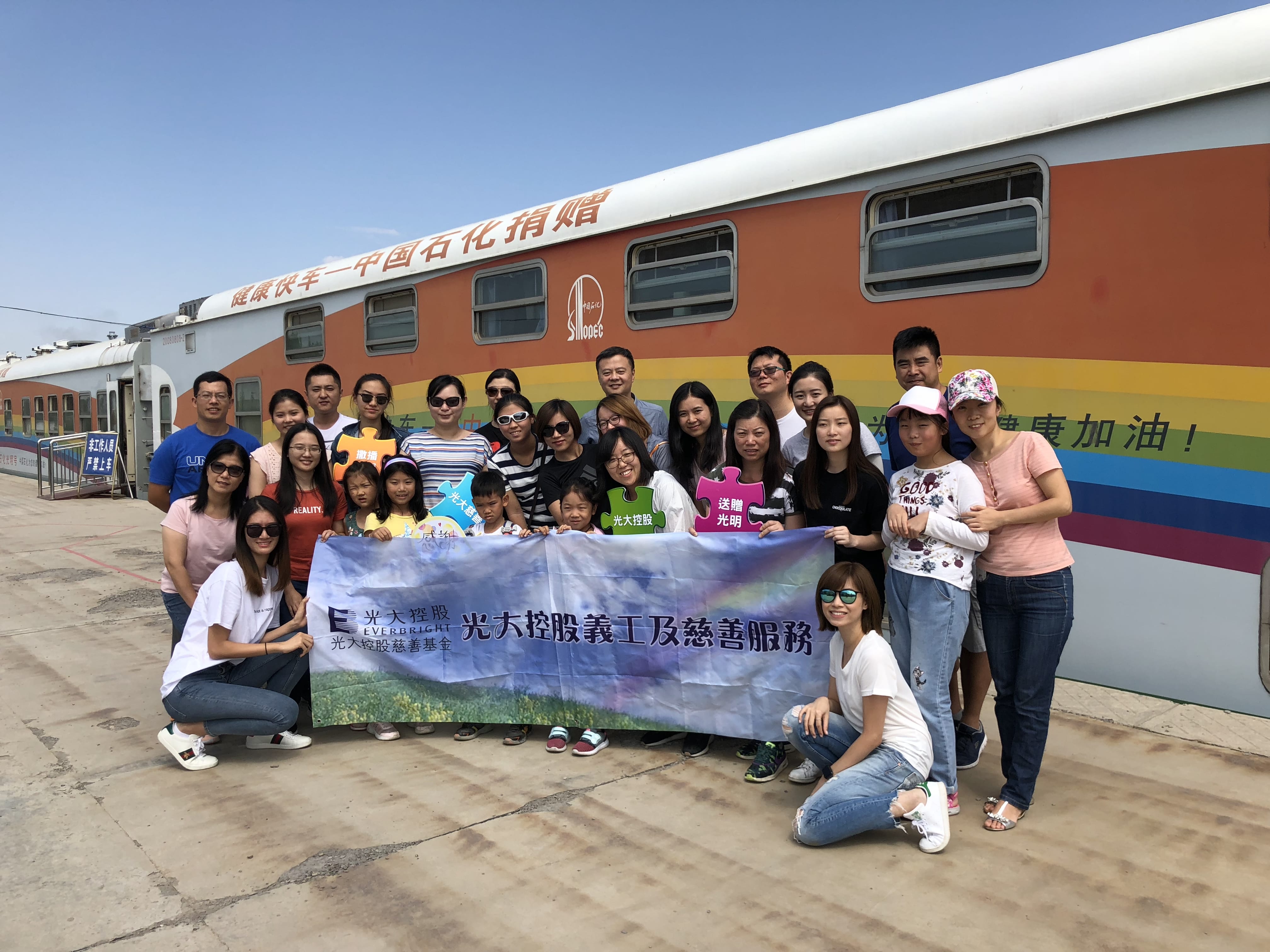 Since 2014, China Everbright Limited ("Everbright", stock code: 165.HK) has co-organised the parent-child volunteer visit with Lifeline Express to its eye-train hospitals for the fifth consecutive years. In the past few years, the volunteer team has been to Shandong, Heilongjiang, Guiyang, and Baishan to bring love and care to the underprivileged cataract patients. This year, from 1-5 August, 27 volunteers from Everbright’s Hong Kong, Beijing, Shanghai and Qingdao offices together with their children visited Lifeline Express Eye-Train Hospital in Yining city, Xinjiang and helped the staff to clean the train.