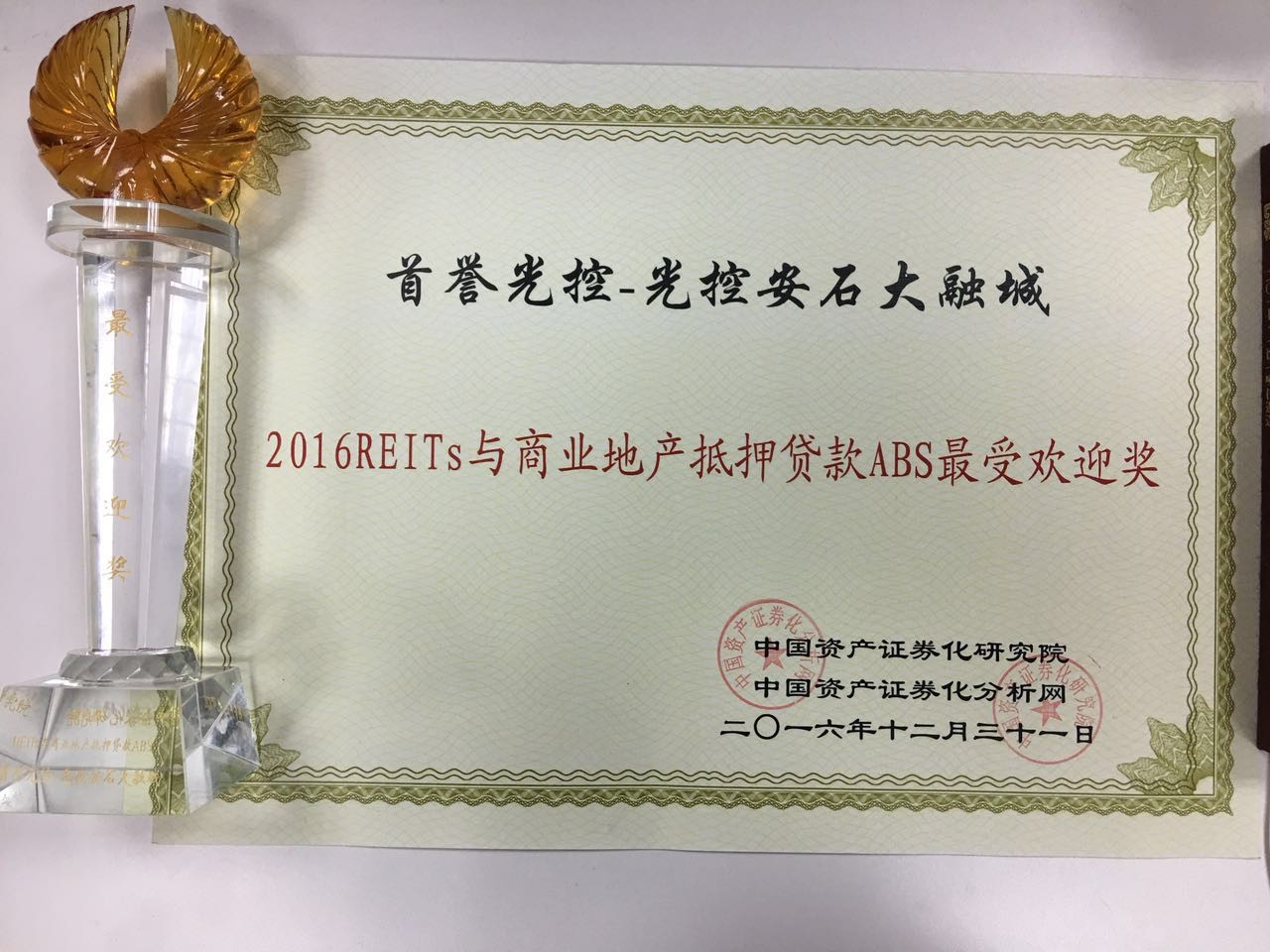 “EBP- EBA IMIX Park Asset-backed Special Programme” Awarded “Most Popular Prize in REITs and Commercial Real Estate Mortgage Loan ABS in 2016”