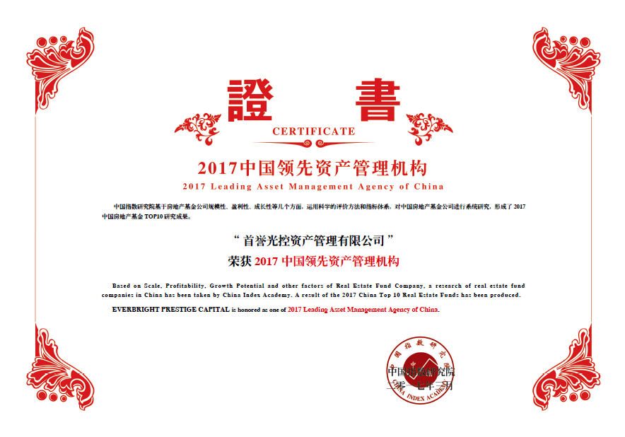 Everbright Prestige received a certificate of honor as Leading Asset Management Agency of China in 2017