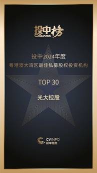 光大控股榮獲投中榜「中國最佳外資私募股權(quán)機構(gòu)TOP30」;光大控股母基金榮獲「中國最佳有限合夥人TOP30」
