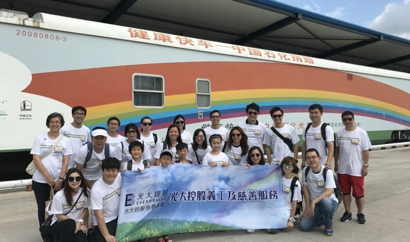 光大控股與健康快車(chē)合作多年,成為其重要支持機(jī)構(gòu)之一。通過(guò)連續(xù)多年贊助健康快車(chē)慈善籌款晚宴,以及捐款支持健康快車(chē)慈善高爾夫球日和慈善演唱會(huì)等活動(dòng), 為健康快車(chē)籌募經(jīng)費(fèi),為貧困白內(nèi)障患者免費(fèi)治盲。2016年光大控股更支持「健康快車(chē)國(guó)際光明行」,首次走出中國(guó),到達(dá)斯里蘭卡為貧病者治盲。2014年起,與健康快車(chē)共同籌辦員工親子義工團(tuán),前往內(nèi)地參觀健康快車(chē)火車(chē)眼科醫(yī)院並探訪白內(nèi)障患者,分別前往山東、黑龍江、貴州、吉林、新疆、山西參觀健康快車(chē)火車(chē)眼科醫(yī)院並探訪白內(nèi)障患者,為病者帶來(lái)關(guān)愛(ài)。 ?