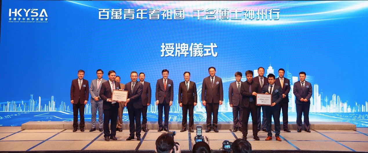 廖世燁、張明翱與主禮嘉賓共同完成了「百萬(wàn)青年看祖國(guó)·千名博士神州行」的啟動(dòng)儀式。光大香港投資部張朝輝、光大控股配置組合與投資管理中心王毅喆分別代表光大中心EB Space和光大香港創(chuàng)新中心向香港青年學(xué)家協(xié)會(huì)授予聯(lián)合孵化器青年科創(chuàng)合作夥伴。