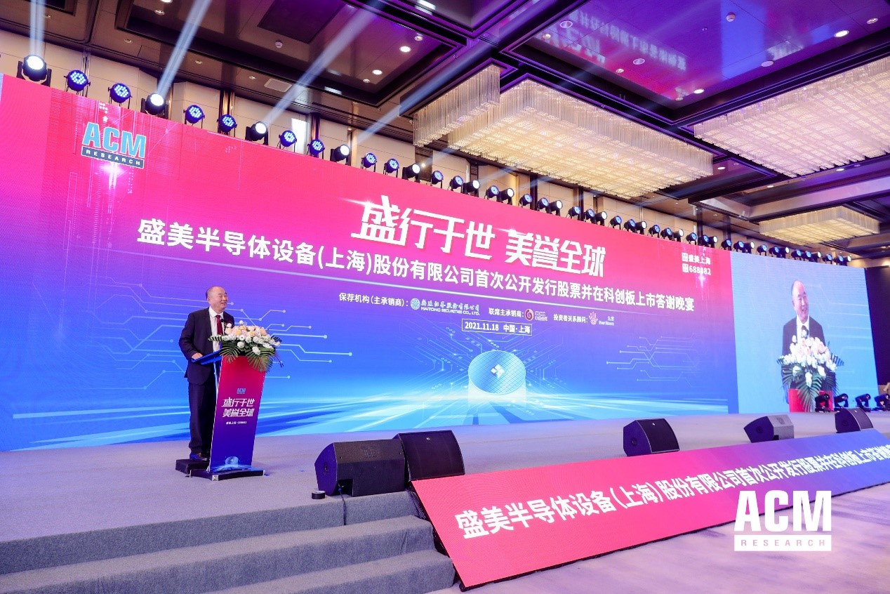 2021年11月18日,光大控股(165.HK)旗下光控華登全球基金一期(「光控華登基金」)投資企業(yè)——盛美半導體設備(上海)股份有限公司(股票簡稱「盛美上海」,股票代碼:688082)成功登陸上海科創(chuàng)板。這是繼2017年11月盛美上海的母公司ACM Research, Inc.(ACMR)在納斯達克實現(xiàn)掛牌之後,盛美半導體在A股市場實現(xiàn)的雙重上市。