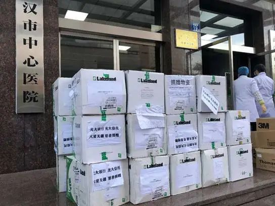 ▲光大信託籌集物資運抵武漢市中心醫(yī)院